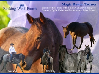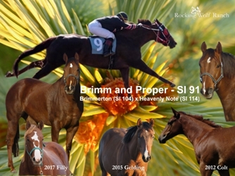 Brimm has the breeding of a champion and the pattern to produce exceptional offspring! She also has proven herself (SI 91 & $18'940). We are selling her as we keep her 2012 colt as Junior Stallion. That's how good this mare produces! Please inquire.